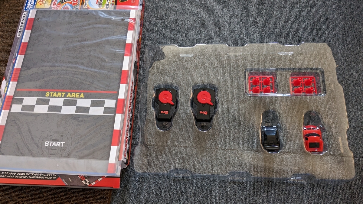 この前、近くのイオンへ行ったら【チョロQチャレンジ!Q極対戦セット ランボルギーニ】が1,000円で投げ売りされていたので購入。